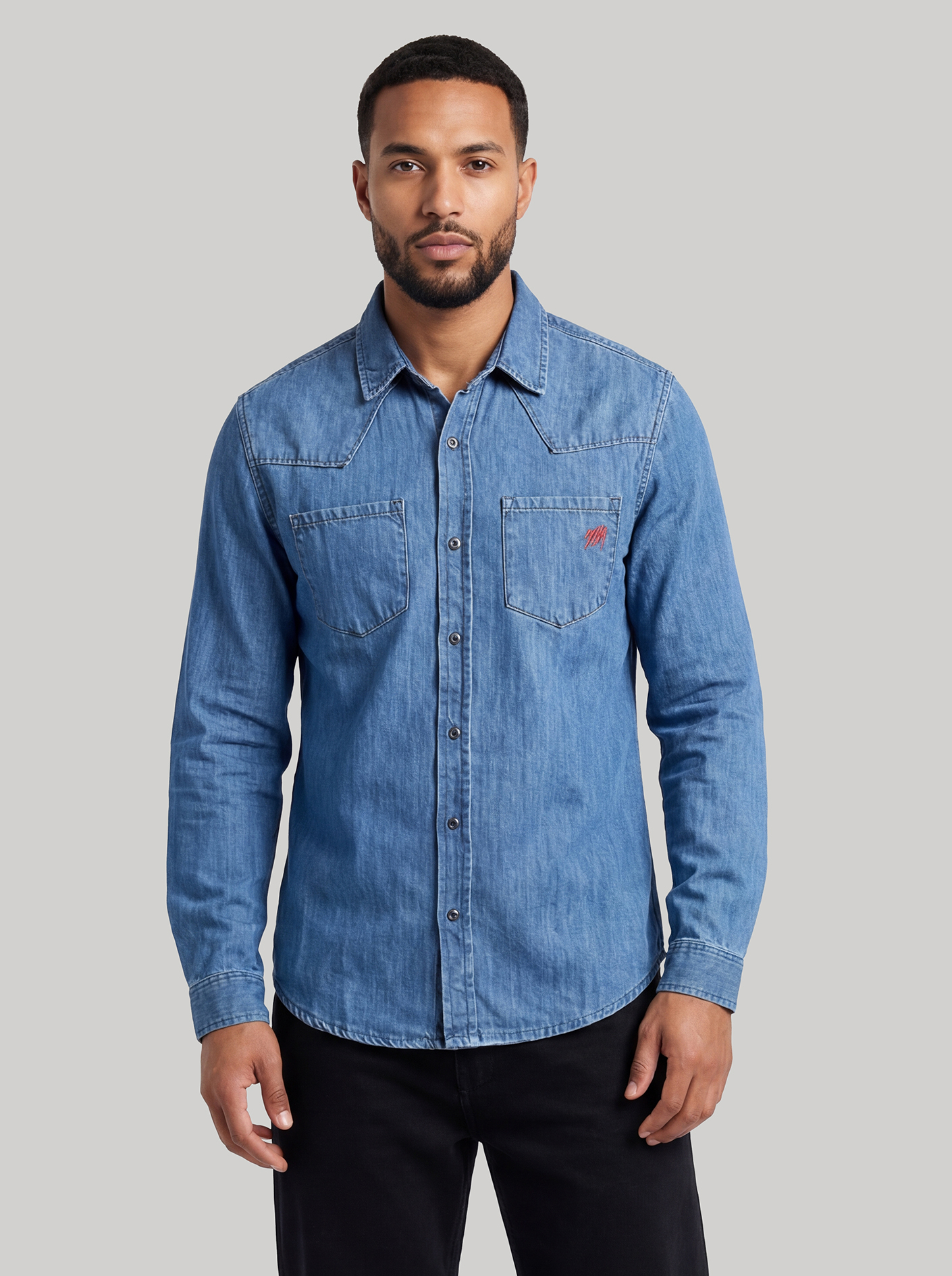 Point collar and double chest pockets
