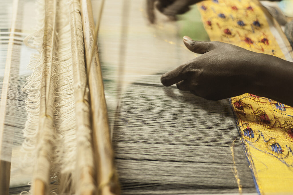The work is slow and precise. Depending on the pattern and color count, a single strip can take hours of focused weaving. The pick-and-pick technique lets the weaver switch colors thread by thread, creating crisp motifs without relying on dyeing or printing. It’s a craft passed down for generations and remains central to Ethiopian textile identity.