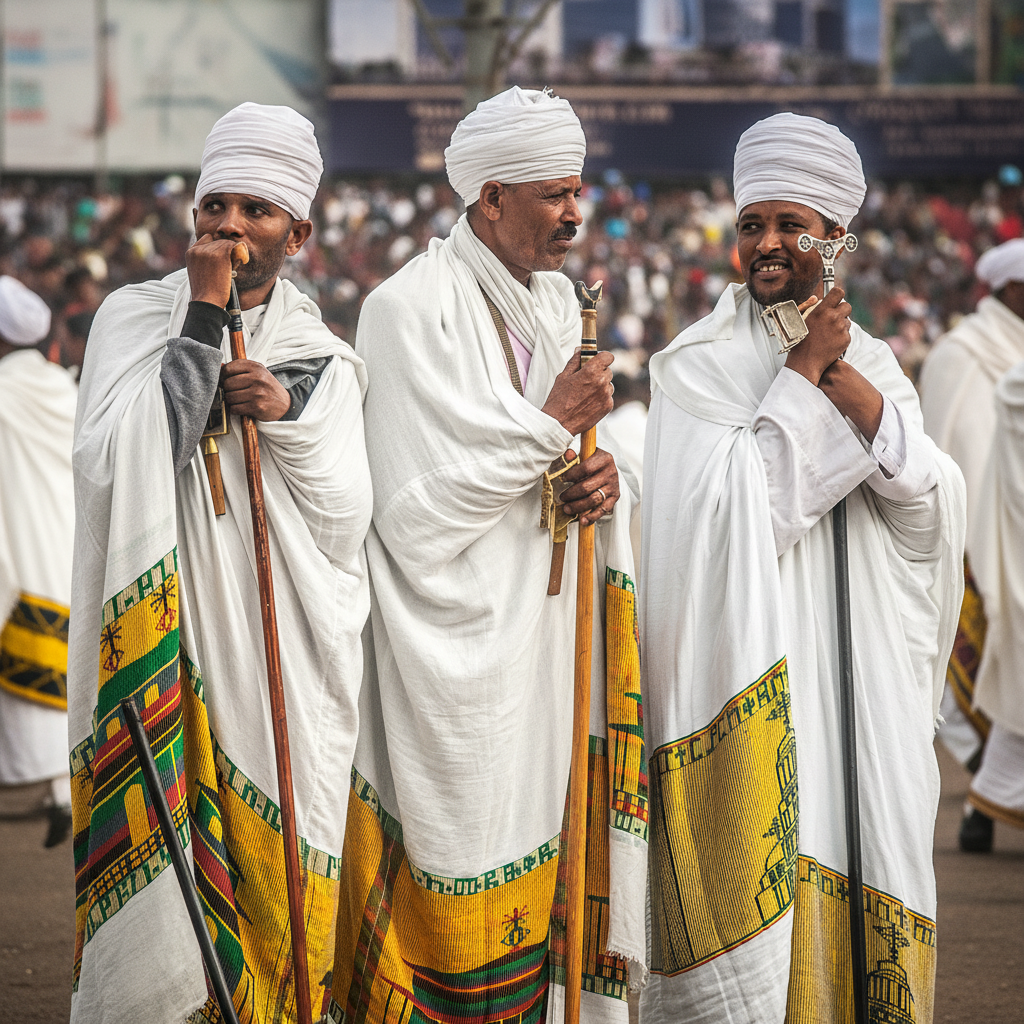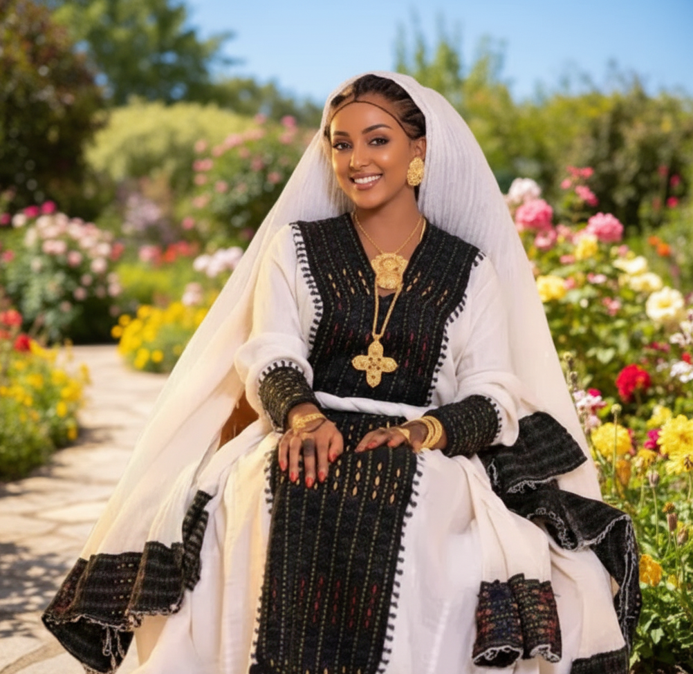 Tilet often reflects a person’s faith, and it carries especially strong meaning in Ethiopian Christian communities. People wear white netela or hager libs with simple Tilet patterns when going to church as a sign of purity and humility. During funerals, black or black-and-white Tilet shows grief and respect. These choices in color and pattern express shared values and link personal faith to community tradition.